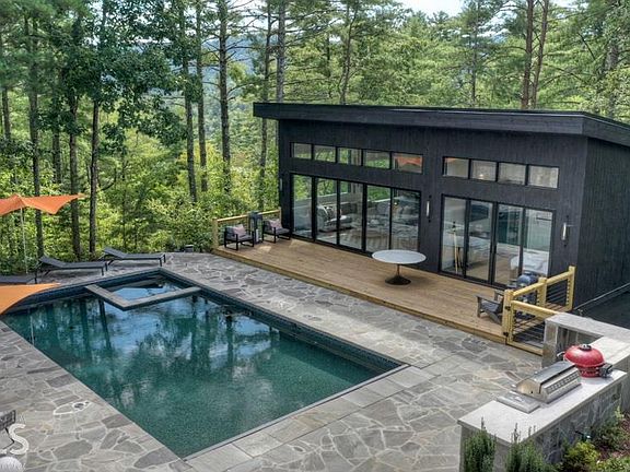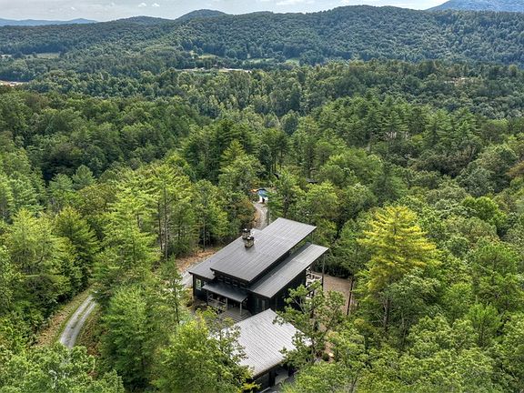 Stunning, year old 5100 total s.f. 6bed/7bath (sleeps 14-18) compound w/ amazing view 5 minutes from downtown Blue Ridge consisting of a dramatic roof lined modern 3700 s.f. main estate, 1100 s.f. pool house w/ full kitchen/bed/bath/living and a charming 1/1 guest cottage all nestled at end of road private 7.10 acres. Mountain Tops & city water. Heated pool/spa with outdoor fireplace, kitchen, & electric pool cover for outdoor living year round. Oversized 3 car drive in, drive out garage & a sizable motor court can easily accommodate a dozen guest vehicles. State of the art technology including all WiFi lighting/dimmer switches indoor/outdoor sound and curated LED lighting. Large open main living room feature LaCantina 10' tall accordion doors that fully open to the 1100 sf outdoor dream party porch & another outdoor fireplace. Viking appliances feat 48" range and 54" outdoor grill and much, much more!