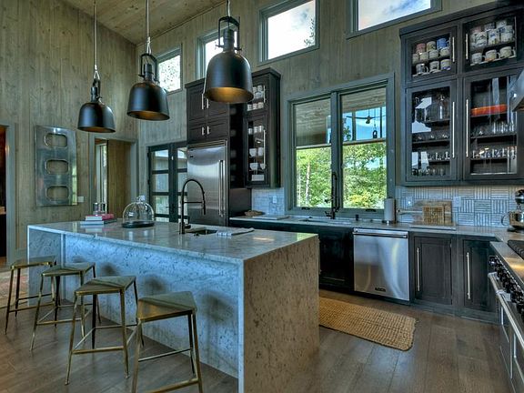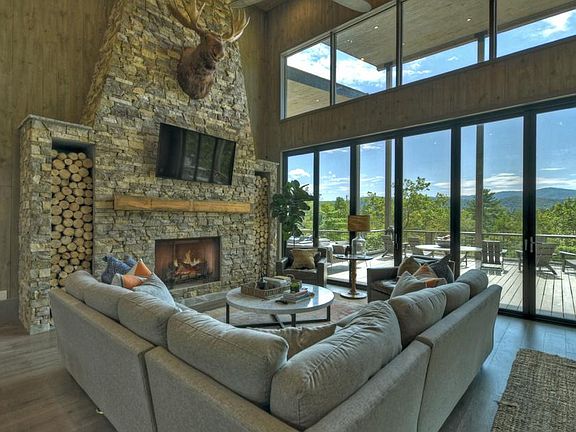 Stunning, year old 5100 total s.f. 6bed/7bath (sleeps 14-18) compound w/ amazing view 5 minutes from downtown Blue Ridge consisting of a dramatic roof lined modern 3700 s.f. main estate, 1100 s.f. pool house w/ full kitchen/bed/bath/living and a charming 1/1 guest cottage all nestled at end of road private 7.10 acres. Mountain Tops & city water. Heated pool/spa with outdoor fireplace, kitchen, & electric pool cover for outdoor living year round. Oversized 3 car drive in, drive out garage & a sizable motor court can easily accommodate a dozen guest vehicles. State of the art technology including all WiFi lighting/dimmer switches indoor/outdoor sound and curated LED lighting. Large open main living room feature LaCantina 10 tall accordion doors that fully open to the 1100 sf outdoor dream party porch & another outdoor fireplace. Viking appliances feat 48" range and 54" outdoor grill and much, much more!