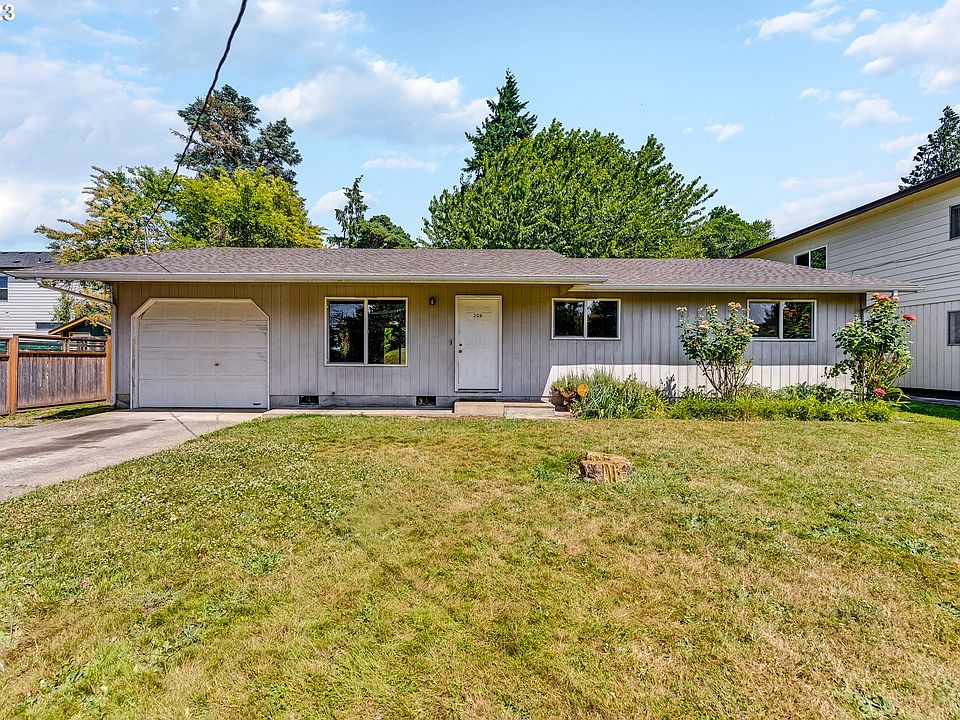 Downtown Ridgefield! Quiet Street! Big Lot. 1148 Sq Ft, 3 Bedroom, 2 Full Bathrooms, Single Level! Open and Bright Living Room. Updated Kitchen with Laminate Flooring, Tile Backsplash, all of the Appliances Stay! Large Primary Bedroom with attached Bathroom and big Closet. Two spacious Spare bedrooms. Washer and Dryer Stay! Energy Efficient Vinyl Windows. Tons of Parking. NO CCRs! Close to Schools and Public Parks. Easy Access to Freeways!
