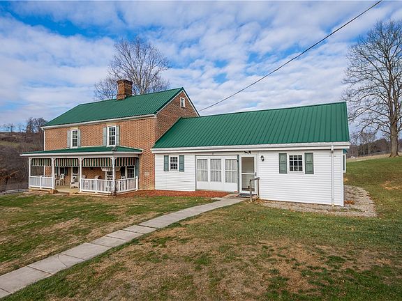 Step into the past while enjoying the conveniences of today in this beautifully maintained home built in 1800 situated on 10 acres. The property blends old world charm with modern updates. You will love the original hardwood floors on the upper level, exposed beams, millwork on the staircase & fireplace mantels as well as the very well insulated home due to multiple brick layer construction. The home features a large main level bedroom & 2 spacious bedrooms on the upper level. The addition features an eat-in updated kitchen with Amish made cabinetry, new vinyl plank flooring & island plumbed for additional sink. The bathroom has been updated w/ brand new walk-in shower with sliding doors. Other updates in recent years include metal roof, windows, furnace, water heater & brick repointing. Cement basement floors with lots of room for storage including a full attic. 2 Amish made sheds, chicken coop & animal shelter are included. Conveniently located between Washington, PA & Wheeling, WV.