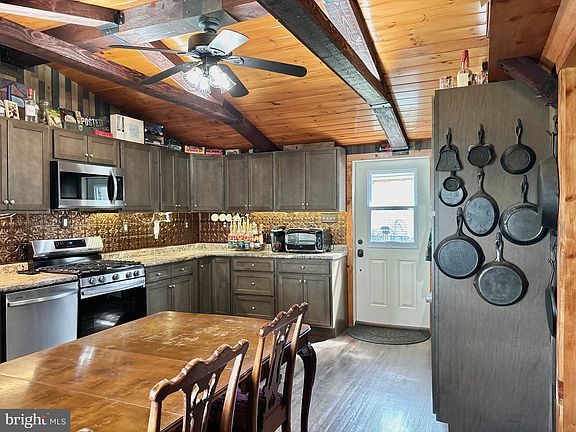 Remodeled with original Victorian charm, this 4-bedroom 2-bathroom home is nothing of the ordinary! Details are everything, from visual design to energy-saving features, these owners skipped nothing. The main attraction is the new, incredible kitchen addition completed in 2023 featuring brand new cabinets, countertops, gorgeous beams and custom decorative brackets and pins. The kitchen also features an adorable, dedicated office space with genuine marble countertops and a peep window to the living room (complete with sliding barn door shutters of course!) The brand-new flooring throughout and warm fresh paint ties the whole home together. Cuddle up on the couch in the living room with a cup of hot chocolate by the cozy propane fireplace in the chilly winter months or lounge on the large rear deck, perfect for entertaining with tons of GFI outlets, a dedicated grilling cove and a scenic view of the mountains. The main level also hosts a full owners suite with remodeled full bathroom. Climb the winding Victorian staircase to the second floor to find three more bedrooms and the second full bathroom. Another set of lovely original stairs lead to the walk-up attic space. You won't want to miss this!