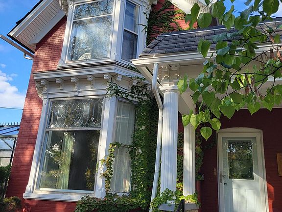 This all-brick historical home's original features are amazing! Original woodwork, hardwood floors, two fireplaces. Two story foyer highlights this awesome curved staircase and beamed ceiling. Beveled glass windows reflect the sunlight. House still has some of the original light fixtures. It was built in the late 1800's. Picture the horse drawn carriage under the covered drive, exiting onto the covered front porch. The carriage house, now a garage, still has the original horse stalls. The seller planted lots of fruit trees. More than two peach trees, more than two apple trees, two kinds of pear trees, two kinds of plum, one cherry tree and one kumquat. Three kinds of grapevines. Oh, by the way, there is a greenhouse too! House can be easily used as a two unit for additional income. Hurry!