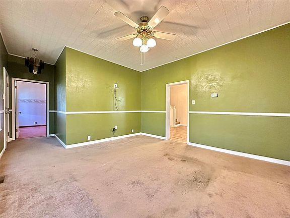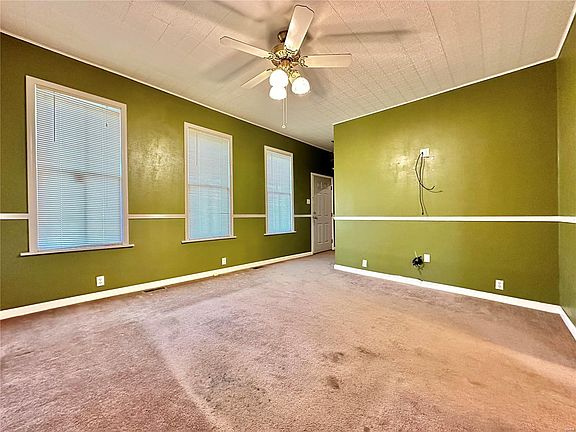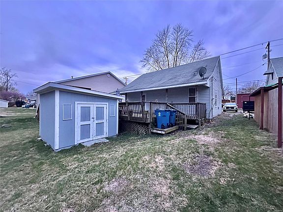 Spacious 1 1/2 Story Home w/Main floor Primary Bedroom Suite (Shared bathroom access to Primary Suite and Hallway) Very Convenient! 9Ft Ceilings on the main, Two main floor bedrooms, large eat in kithen w/access to covered back deck overlooking deep lot w/wooded privacy and Storage Shed. Good size living room w/ a wall of windows for great daylight. There is even a covered front porch ready for that porch swing. Upstairs find two large bedrooms and storage closet. Downstairs find the walkout basement, a wide open unfinished space w/workbench and laundry hookups. Conveniently located just a block off of Main Street. Located on a sidewalk street for easy access to convenient shopping, restraunts, Kruta Bakery and Dairy Freeze! Home has passed Collinsville City Occupancy and is ready for its new owners to call Home! Contact your favorite Real Estate Broker to see this property. Home Sold AS-IS. Age if home is approximate.