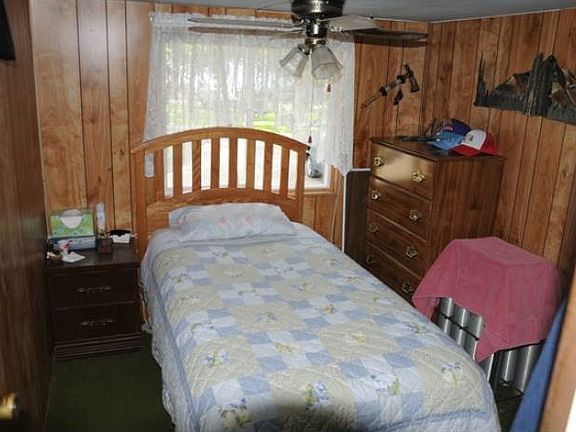 immaculate inside with galley style kitchen, dining area, with wood stove, large office area, living room with propane stove. Back room with storage & room for extra frig & freezer. Large laundry room with 1/2 bath. Hobby shop, wood shed could be garage. Across from the lake. Owner will carry contract with sizable down payment. Being sold AS IS, not financeable.VACATION RECREATION PROPERTY