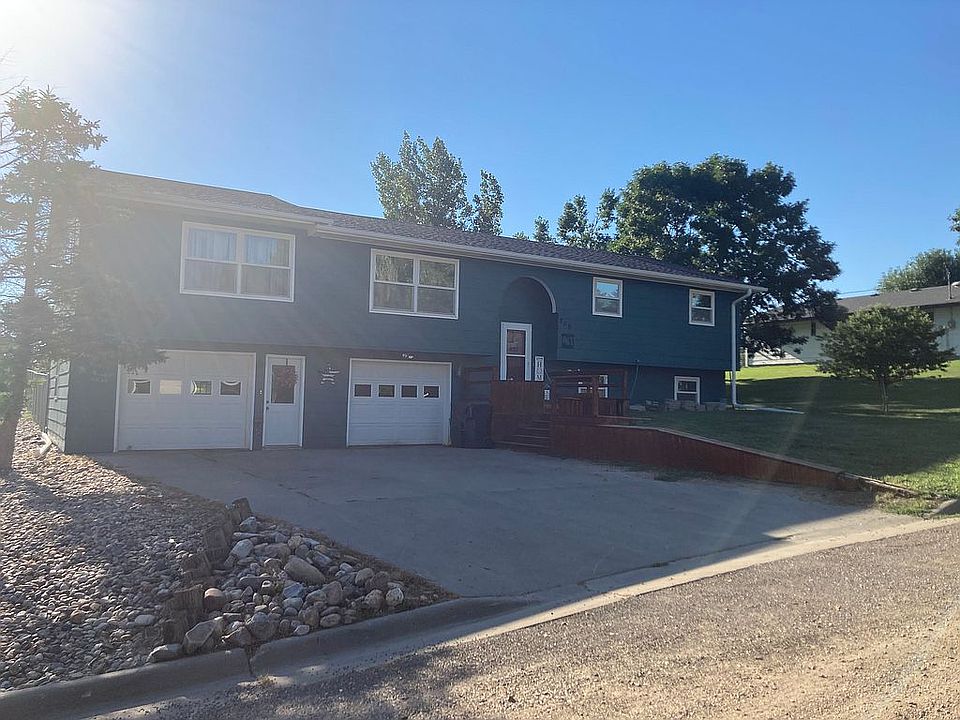 This beautiful split-foyer ranch style home sits atop 2 lots with 3 main floor bedrooms and full bath. Open kitchen flows into dining room and oversized double living room. Sliding glass doors open to large back deck with shaded fenced in yard and sprinkler system. Downstairs includes a family room, additional bedroom, 3/4 bathroom, and utility room. Paved driveway leads to front porch and 2 oversized garage stalls opening to back patio. Roof replaced in 2019, fence put in 2020, outside repainted in 2021, stove updated in 2022. Newer microwave, dishwasher, and windows. A must-see spacious family home!
