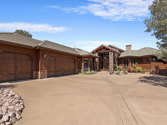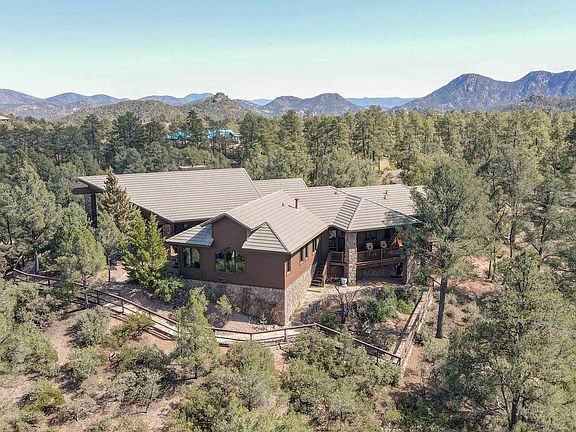 Absolutely stunning! Rare fine and TURN KEY and move in ready, this Gem comes fully furnished including all furniture, decorations/art and Sonos System throughout the interior and exterior of this home. This single-level home, located within the prestigious Rim Golf Club, offers unparalleled mountain views from every angle. Situated atop a hill on a generous 1.12-acre lot, this property boasts panoramic vistas providing views of additional natural vegetation over multiple acres from every window without any views of nearby homes. Upon entry, you'll be greeted by an impressive foyer adorned with flagstone flooring, setting the tone for the luxurious interior. The floor plan, designed for ultimate convenience, features flagstone and hardwood flooring. The gourmet kitchen features exquisite granite countertops, knotty alder cabinets, and a butcher block island. Equipped with top-of-the-line appliances including a built-in refrigerator, wine refrigerator, and cold drink refrigerator drawers, this kitchen is as functional as it is beautiful. A spacious walk-in pantry and ample storage ensure all culinary needs are met. Enjoy casual dining at the breakfast bar or in the charming breakfast nook or opt for a more formal experience in the adjacent dining area, seamlessly integrated into the open-concept great room. Floor-to-ceiling windows in the great room offer views of the mountains and surrounding landscape, while a fireplace with rock accents adds warmth and ambiance. The primary bedroom is a true retreat, boasting generous proportions, full amenities in the ensuite bathroom, and a cozy fireplace with a jetted tub for ultimate relaxation. Two additional ensuite bedrooms and a separate office provide ample space for guests or a home office setup. For outdoor enthusiasts, the property offers an oversized three-car garage and a plethora of outdoor amenities. Step outside to find a covered patio, hot tub, multiple sitting and dining areas, a built-in BBQ, and a TV area with a cover for year-round enjoyment. The property is fully fenced and features a water feature with natural landscaping and drip systems for easy maintenance. Additional features include a tankless hot water heater, lightning rods for added protection, and a new soft water system. Please note that a mandatory membership is required, with a minimum Sportsman Membership available for purchase through escrow with Membership Services. Don't miss this opportunity to experience luxury mountain living at its finest! Schedule your private showing today.