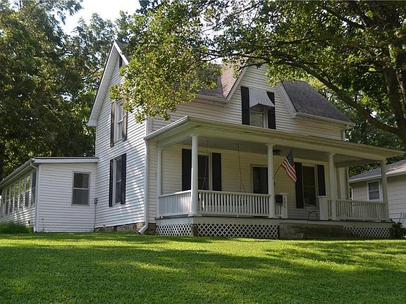 Beautiful two story home!!! Home has been extremely well cared for, owner's pride shows throughout. On large corner lot, with detached garage. Front porch greets you, walking in the front door the freshly remodeled formal dining room makes a statement, walking into the large kitchen you have a bar and extra space to use your imagination! Huge wrap around enclosed porch off of the kitchen is great for patio furniture and relaxation! Living room completes the main floor tour. Three bedrooms upstairs.. Full bathroom on each floor. Fresh paint! Home is just ready for your furniture. You'll love all the charm it has to offer. Detached garage and workshop area would be perfect for home office area. Big driveway for lots of space. Mature trees..