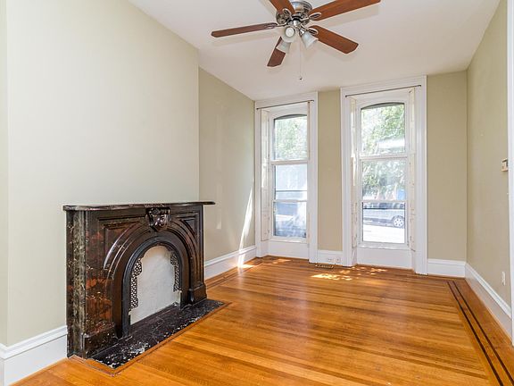 original hardwood, plantation shutters, high ceilings, and decorative fireplace in the living room -So much natural light- 11 windows and a double French door leading out to the outdoor area. Rare in row homes! -smart lock allows packages to be delivered securely into vestibule of the house -coat closet -updated bathroom with stylish tile shower and built in wall storage -renovated spacious, eat-in kitchen with stainless steel appliances, gas stove, roll out cabinets, and lazy Susan storage -all new double paned windows for energy savings -new carpet in the bedroom; double clothing bars in the closet -half bath with washer and dryer -bonus room separated from the bedroom by a swinging French door -exposed brick in the bedroom and bonus room -sight lines from the front to the back of the unit -gorgeous outdoor area with garden. Currently hydrangeas are soon to bloom -access to rooftop deck -basement with ample room for storage -blocks from the water and restaurants/shops Tenant responsible for utilities including water