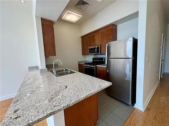 Dreaming on living in downtown Hammond? Your perfect place awaits in this beautiful 2-bedroom, 2-bath apartment. The open kitchen overlooks a spacious living room and dining area, featuring large windows that flood the space with natural light. The kitchen bar provides additional seating with room for stools. The balcony offers stunning views of SW Railroad. A personal elevator adds convenience for transporting groceries and other items.