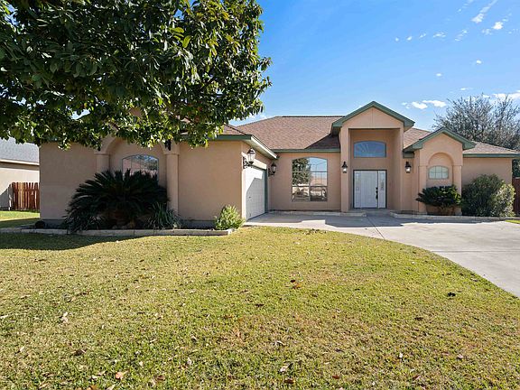 Welcome to 206 Saddle Blanket Trail, a beautiful and well-maintained single-family home in one of Del Rio’s desirable neighborhoods! This spacious residence features 4 bedrooms, 3 full bathrooms, and 2,257 sq ft of comfortable living space on a 0.32-acre lot. Step inside and enjoy an open layout with vaulted ceilings, modern updates throughout, and plenty of room for everyday living and entertaining. The heart of the home is the large kitchen — perfect for meal prep, gatherings, and everyday living. Retreat to the luxurious primary suite complete with a jetted tub, walk-in closet, and stylish lighting fixtures. You'll also find thoughtful features like a two-car garage, covered back patio with pergola and fans for outdoor enjoyment, and a sprinkler system keeping the lush backyard green and inviting. The backyard also includes a large shed for extra storage, and the fenced yard is perfect for pets, kids, or entertaining. Located close to Buena Vista Elementary, parks, shopping, and everyday conveniences, this home blends comfort, style, and convenience. Don’t miss your chance to make 206 Saddle Blanket Trail your new home — schedule your private showing today!