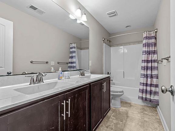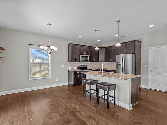Welcome to Oyster Landing in Sneads Ferry! This 4-bedroom, 2.5-bath home is conveniently located just minutes from Topsail beaches, local shopping, dining, and grocery stores. Enjoy a short commute to Stone Bay, Camp Lejeune's back gate, and easy access to Highway 17 for travel to Jacksonville or Wilmington. The main level features a spacious foyer with coat closet and half bath, an open family room with gas fireplace, and a dining area that flows into the kitchen. The kitchen offers granite countertops, tile backsplash, an island with seating, and a large under-stair pantry. Sliding doors lead to the fully fenced backyard with a covered patio and extended concrete pad. Upstairs you'll find four bedrooms, a full bath, and a laundry room with washer and dryer included. The primary suite features tray ceilings, dual walk-in closets, and a private bath with dual vanities, soaking tub, and separate shower. A two-car garage and extended driveway provide ample parking.