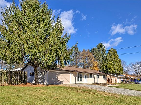 Welcome home to this beautifully renovated 4-bedroom ranch in the heart of Cranberry Township. A wide driveway leads to a two-car garage, perfectly complementing the home’s fresh curb appeal. Inside, a bright living room with a cozy fireplace, ceiling fan, and recessed lighting opens to a dining area and stunning kitchen featuring stainless steel appliances, white shaker cabinets, granite counters, and a subway tile backsplash. Durable LVP flooring flows throughout. A French door leads to a spacious patio overlooking the fenced backyard—ideal for relaxing or entertaining. Enjoy the ease of one-level living with four bedrooms, two full baths, and convenient laundry on the main floor. With a new roof and prime location just a short walk to Graham Park and minutes from shopping and dining, this home is move-in ready and made for comfortable modern living.