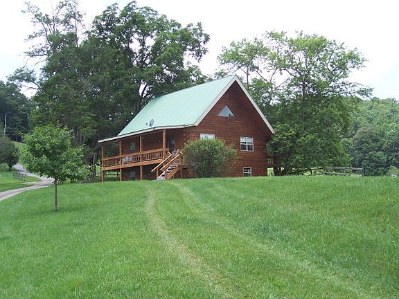 24.97 ACRES,MOSTLY ROLLING PASTURE WITH LONG RANGE MOUNTAIN VIEWS,A POND,TWO HOMES AND A 35X49 TWO STORY,6 STALL BARN.THE MAIN HOME HAS OVER 2400 SQ FT OF LIVING SPACE,A WRAP AROUND SCREEN PORCH,UPPER DECKS WITH HOT TUB OFF MASTER,OPEN FLOOR PLAN MAIN LEVEL,OAK FLOORS,CROWN,CHAIR RAIL,10'CEILINGS,EXPOSED BEAMS,T&G CEILING,2 CUSTOM BRICK FP,12X18 OFFICE WITH OAK JUDGES PANELING,BAY WINDOW BREAKFAST AREA,HUGE ISLAND IN THE KITCHEN OPEN TO GR/DINING.CUSTOM 1100+ SQ FT,1 BDRM,1 BA,LOFT,LOG CABIN,WITH FULL BSMT,OVERLOOKS THE POND FROM A 6X32 COVERED DECK IN THE BACK AND MOUNTAIN VIEWS IN THE FRONT.
