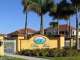 Best available condo in the prestigous Blue Water gated community! Oversized 10K Boat Lift & dock INCLUDED! One-level living on 1st floor for easy access with no stairs or elevator needed. Located in quiet area on intersecting wide canals provides large water view. WEST exposure for spectacular sunsets & views. Watch fish jumping, manatees, water birds & more. 2-car garage joins condo for easy access. Upscale single family homes being built across wide canal. Many upgrades: Volume ceilings, granite, and more. Easy, quick storm protection provided by Rolldown shutters on lanai and accordion shutters on windows. Well-maintained community also features a delightful tiki hut with large dock overlooking the water, a clubhouse with fitness room, pool & spa and gated, secure access. You can look other places but you won’t find another Gulf-access condo with so much value. Completely rebuilt down to the studs in 2013 and was Certified to established protocol specifications for drywall remediation. Convenient to shopping, restaurants & I-75. PAID Assessments for all storm damage resulting from Hurricane Ian. Enjoy the FL lifestyle you dreamed about! Furniture available for additional fee.