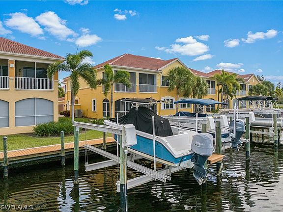 Florida Living At It's Best With A Million Dollar View Down The Canal! This Condo Has It all....GATED, GULF ACCCESS Community, 2-Car ATTACHED GARAGE, PRIVATE ELEVATOR, YOUR PRIVATE DOCK Right Behind The Unit. Boaters Will Love The Quick Access to Open Water Through Matlacha Pass. The Community Has a Big Tiki Hut Over The Water Along The Long Board Walk Which Is Great For Community Gatherings Or Quiet Relaxation. Enjoy The Community Heated Pool or Spa, Work Out In the Gym, Or Entertain In The Club House. Inside This Large (2374 Sq. Ft) Unit You Will Find A Formal Dining Room, Granite Counertops In Kitchen and All 3 Baths, Tray Ceilings in All Rooms, Walk-In Closets In All Bedrooms, And A Large Lanai. All Windows Have Accordian Type Storm Shutters With Electric Roll Down Shutters On Lanai. Ideal For Year-Round Living Or Seasonal Living. Don't Let This One Pass You By !