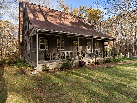 Crafted by a local renowned builder in the 1980's, this home was built with quality wood and materials with a post & beam/reproduction flair! Accents include * Slate floors & Wide board wrought iron nailed floors * Solid panel wood doors throughout * Many custom Built-Ins * Divided light windows and some ceiling beams. The overall living space offers large rooms, with a formal dining room & living room along with the family room off of the kitchen with fireplace & sliders to deck overlooking a serene wooded back yard. The basement has a partially finished room plus an area under the front porch that could serve as a great wine room/root cellar/wood storage. Totally private and tucked away off the road, this property is within walking distance of the Sheepskin Hollow Preserve, one of the many conservation lands that are part of East Haddam. Relax on your front porch and enjoy the tranquility this setting has to offer!