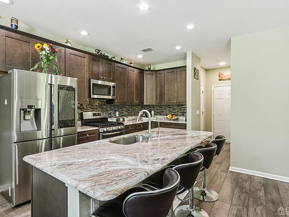 Discover the epitome of modern living in this stunning 3-bedroom, 3.5-bath townhome, ideally situated in the desirable Cambridge Crossing community. This corner property, built in 2017, offers an abundance of natural light, enhanced by high ceilings and meticulously designed interiors featuring upgraded and stylish finishes throughout. Upon entering, you'll be greeted by an open floor plan that seamlessly connects the living, dining, and kitchen areas, creating a warm and inviting atmosphere perfect for family gatherings. The Upgraded kitchen is a chef's dream, boasting granite countertops, an upgraded backsplash, a 5-burner gas range, and premium stainless-steel appliances. Ample storage space is provided by a separate pantry. The master bathroom is a luxurious retreat with elegant upgrades, including a tub, premium fixtures, tiled showers, and modern vanities. The upper level features a versatile loft area, ideal for a kids' playroom or a home office and for a day bed. The fully finished basement expands your living space with a full bath and a stylish wet bar, perfect for entertaining. Have a Home theatre Projector and speakers outlets for your future Home theatre setup. Additional features include a paved backyard, a full house water filter, a humidifier, and a two-car garage equipped with an electric vehicle charger outlet. This exceptional property is located in an excellent school district with Monmouth Junction Elementary School and offers a premium lot with convenient access to shopping, restaurants, major highways, and NYC trains and buses, making it an ideal choice for commuters.