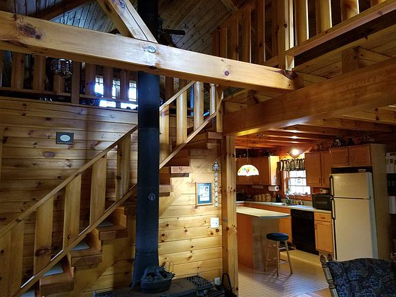 Secluded log home on 18.78+- wooded acres. 2 Hours GWB..... Beaver MTN Log home with a cozy porch for that restful evening. Warming fireplace and sliding glass doors