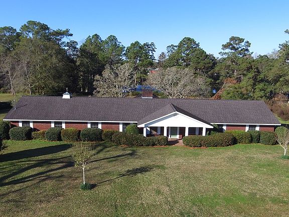 This brick, 4 bedroom, 3 1/2 bath home sits on around 11 acres and is less than a mile from Chick-fil-A. One of the key features of the property is the almost 2 1/2 acre private pond in the back yard. What a view. The living room features a real fireplace and pecky cypress walls. All of the bedrooms have hardwood floors. The master bedroom has a large walk-in closet and its own private bathroom. Two of the bedrooms share a bathroom and both have walk-in closets. The fourth bedroom uses the hall bathroom. Adjoining the living room is a screened in porch with vaulted ceilings. There is an office with v-groove pine walls off of the double carport and a storage room with a half bath. Additionally there are a couple large pole barns on the property.