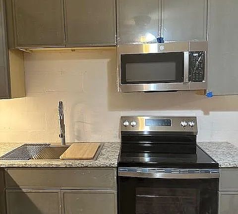 Completely Renovated and Move-In Ready! This beautifully updated unit has been fully renovated from top to bottom everything is brand new. Step onto the charming covered front porch and into a spacious great room perfect for relaxing or entertaining.The bright and inviting bedroom offers ample closet space, while the stunning bathroom features designer tile and generous storage. The custom eat-in kitchen is a true showstopper, showcasing premium cabinetry, granite countertops, a deep farmhouse sink, and brand-new stainless steel appliances perfect for any home chef. A convenient mudroom with a brand-new washer/dryer combo opens directly to the backyard, adding function and ease to everyday living. Experience the best of garden-style apartment living in this exceptional home, ideally located near shopping, dining, and major interstates. Hurry won't last!
