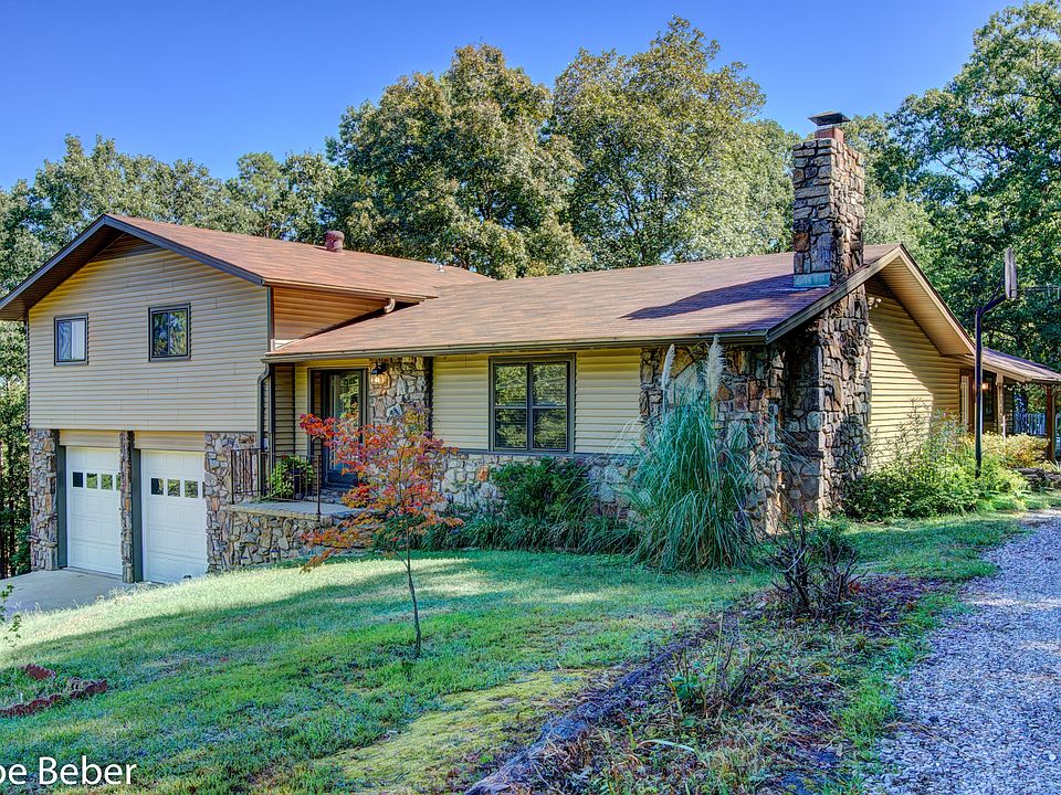 Second Living Area or 4th Bedroom! Updated & move-in ready, this home has more room & storage than you'll probably ever need! Features include gleaming hardwood & tile floors, natural stone wood-burning fireplace, large kitchen with built-in desk area & 2 pantry closets, master bedroom with private bath, alarm system, above-ground pool, & an over-sized garage large enough for your RV! Surrounded by woods, you'll love the privacy this home has to offer.