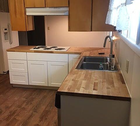 Nice home with a great covered back porch, fenced yard, and great neighbors. Recently updated flooring throughout, new shower tiling downstairs, a beautiful Fischer Fireplace downstairs and new butcher block counters in the kitchen. This home is a blank canvas, come make it yours. Selling as an estate