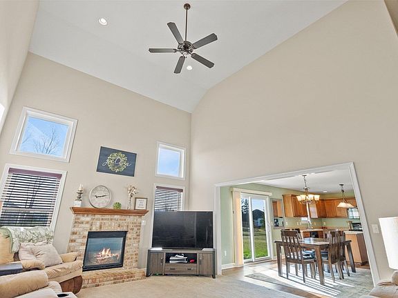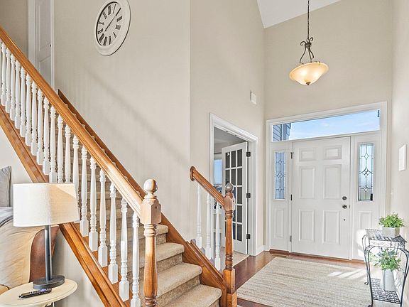 Welcome to your new home in the desirable Hunter's Glen subdivision! This spacious 4 bedroom plus a den, 3 car garage, and 2.5 baths home offers ample space for comfortable living. The foyer opens to the great room with cathedral ceilings and an impressive staircase. Natural light and a gas fireplace will make you feel right at home! The spacious, light-filled kitchen is a chef's dream, showcasing the large dining area and Kitchen island, perfect for gatherings with loved ones! Grabill Cabinets and a Gas stove are a plus! Plenty of space is in the walk-in kitchen pantry and off the garage laundry room! Retreat to the private main bedroom en-suite, with a large walk-in closet, double sinks, and a separate makeup vanity! Upstairs, discover three bedrooms and a full bathroom! Enjoy outdoor activities on almost a half-acre lot, including nights around the newer fire pit! This newer built home is move-in ready and ready for the new owners! Refrigerator new in 2022, Washer and Dryer new in 2021.No HOA Fees.