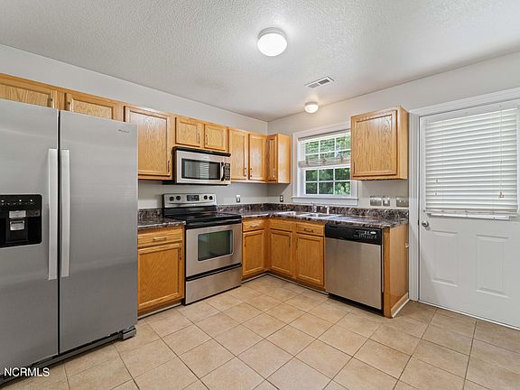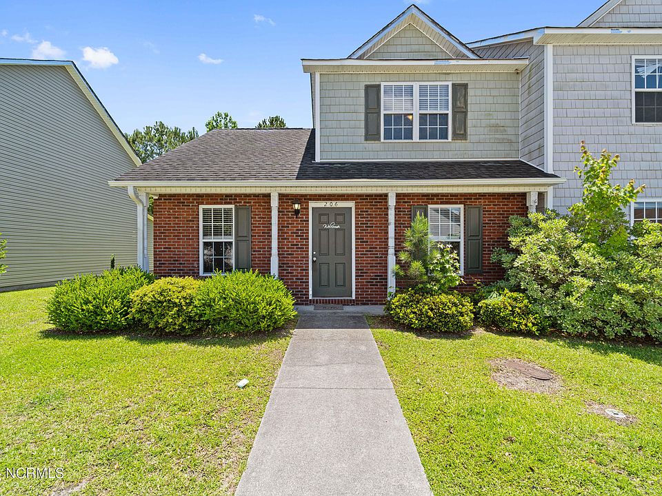 Welcome to 206 Streamwood Drive, a spacious and well-maintained 3-bedroom, 3-bathroom end-unit townhome in the heart of Jacksonville, NC. This charming home offers modern comfort with updated stainless steel appliances, ceiling fans throughout, and plenty of natural light. Enjoy the convenience of two dedicated parking spaces and an attached storage unit at the back of the home, perfect for keeping seasonal items, bikes, or tools. As an end unit, you'll appreciate the added privacy and quiet. The community provides a shared dumpster and cluster mailbox station, making daily life that much easier. Each bedroom offers ample space, and with three full bathrooms, there's plenty of room for everyone. The kitchen is updated and functional, ideal for preparing meals and entertaining guests. Located close to shopping, restaurants, and Camp Lejeune, this townhome is perfect for those looking for both comfort and convenience. Lawn maintenance is included, allowing you to enjoy a low-maintenance lifestyle. Don't miss out on this beautifully updated townhome in a friendly, well-kept community. Schedule your showing today and make 206 Streamwood Drive your new home!