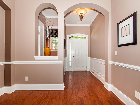 Gorgeous 3 bedroom townhome w/gleaming hdwds on main flr; coffered, 10' & trey ceilings. Open floor plan has architectural arches thru out, formal din w/wainscot molding, liv rm features a gas log frpl, adjoining gourmet kit w/42" maple cabs, granite counter. island/bar & SS appl's. Spacious master w/generous walk in closet & luxurious bath w/dual vanity, garden tub/sep shower. Relax on the private screened porch. Conv to shopping, dining, greenway trails, RDU & RTP