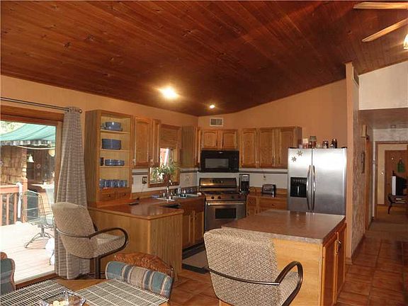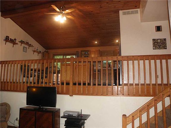 Great Privacy on almost 1 Acre of Beautifully Landscaped Property. Ceramic Tile Floor in Kitchen w/ Oak Cabinets, Center Island & Planked Wood Cathedral Ceilings w/ Recessed Lighting & Wood Railing overlooking LivRm. Sliding Glass Dr to AWESOME 19x11 Deck & add'l 19x9 Cov'd Deck w/ Brazilian Cherry Wood Bar. Entrance into Liv Rm w/ Soaring Cathedral Wood Ceilings. Log burning Stone Fireplc w/ Ceramic Tile Base. Big 4x6 WIC in Mstr + 9x9 WIC in 2nd BdRm too. 2nd Level could easily be added onto over Grg!