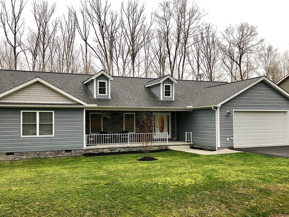 Gorgeous ranch, open floor plan, neutral colors, hardwoods, beautiful kitchen, quartz counters, cherry cabinets, stainless appliances, large bedrooms, master suite w/ double vanity, tile shower, ample storage, covered front and back porch, oversized 2 car garage, gutter guards, plus wired for hot tub and separate garage! Do not pass this one up!
