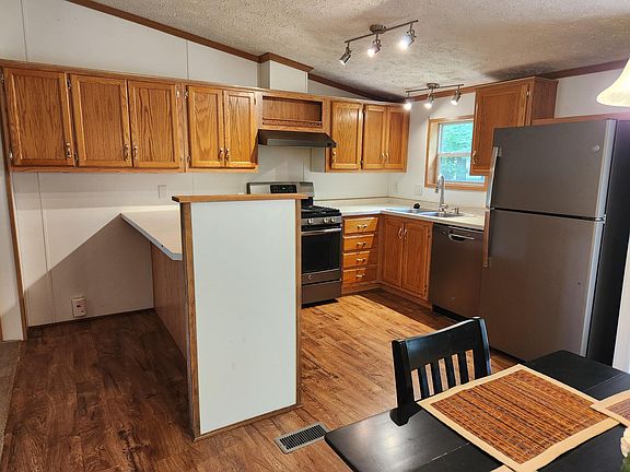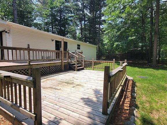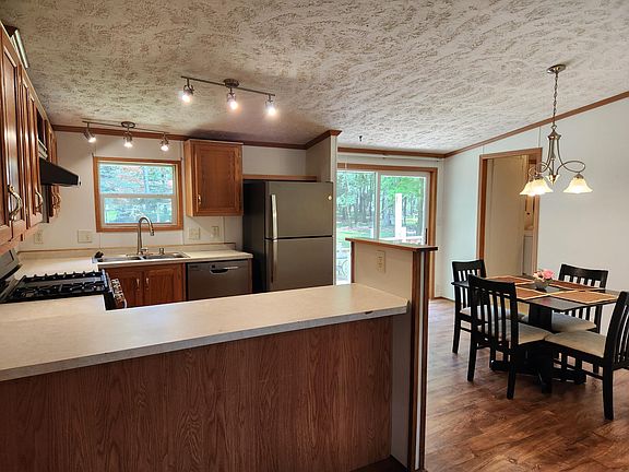 Superb Location in Town! Across from the Clinic & near shopping, restaurants & more! This 2001 3BR/2BA home on .47 acres of wooded land offers all main floor living with an open-concept design. The eat-in kitchen has vinyl plank flooring, lots of cabinet space, newer appliances (3-5 years) & a breakfast bar. There's a spacious living room w/built-in entertainment center, primary bedroom w/attached full bath w/shower & soaking tub, 2 more bedrooms & a 2nd full bath, along with a laundry/mud room. Maintenance-free vinyl siding & vinyl windows, a large exterior wood & composite deck, huge backyard, shed, natural gas & hi-speed internet/cable are some additional bonus amenities! Priced to sell and would be a great home or investment rental property! Room for a garage too!
