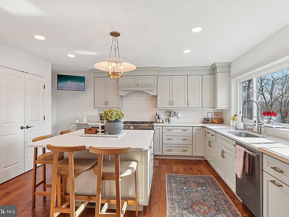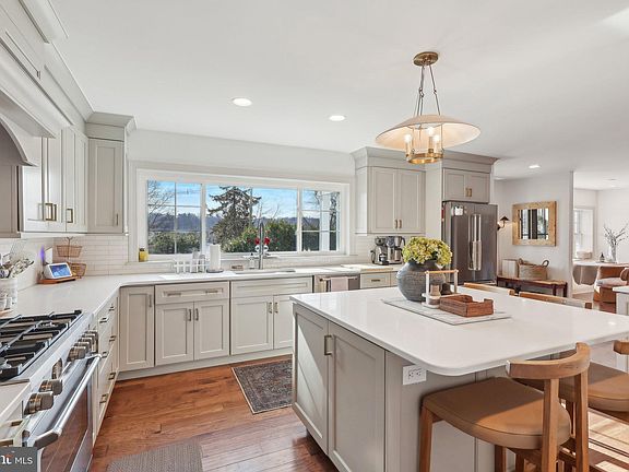Welcome to 206 Upper Gulph Road – a 3 bedroom, 2.5 bathroom renovated masterpiece! From the sleek slate walkway that leads to the front porch, step inside and be welcomed by the warm, hickory hardwood floors that flow seamlessly throughout the home. The chef's kitchen is a true showstopper, featuring Century cabinetry and equipped with top-of-the-line Bertazzoni Spa appliances, including a 5-burner gas range. White quartz countertops, double pantries, and a center island make this the perfect space for entertaining. The dining area comfortably accommodates up to 10 guests, with a custom-built bench that blends style and function. The living room is centered around a remote-controlled gas fireplace with a slate hearth and built-in bookshelves. From here, step out onto a private, gated stone patio nestled in one of two side yards. The first floor also includes a powder room and a versatile mechanical storage room, offering the flexibility to create a home gym or storage for workout gear. Thoughtfully placed, there’s also a wall receptacle for a TV to enjoy live-streamed workouts. Upstairs, the primary suite offers two walk-in closets and a spa-inspired bath complete with a rainfall shower, double vanity, and a make-up vanity area. Two other spacious bedrooms share the tiled hall bathroom and a convenient laundry room completes this level. From the second-floor, step outside to a fully enclosed backyard- beautifully crafted post and rail fence with three gates. This graded and fenced area provides the potential for a built-in pool while the koi pond offers tranquility and relaxation during the warmer months. This home also features a circular driveway with ample off-street parking, plus a two-car garage that can be accessed from either side of the drive. With picturesque views of the Villanova hills from the front, this home is just minutes from Villanova University, major roads, shopping, public transportation, and Downtown Philadelphia. The community is rich in history and offers beautiful parks, top schools and universities, all while benefiting from the low taxes of Upper Merion Township. Don’t miss the opportunity to own this low maintenance, fully renovated, open concept home—it truly is special. Schedule your private tour today!