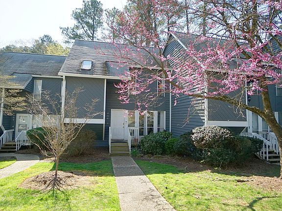 Charm and Character Galore! A fantastic opportunity to own this lovely 3 bedroom townhome nestled in the heart of Cary. Location can't be beat! Walk or ride your bike to downtown Cary, restaurants, brewery, shopping, parks and entertainment. Spacious and open floor plan with abundant natural light that's perfect for entertaining and relaxing. Living Room features a beautiful wood burning fireplace and natural hard wood floors. Kitchen is both stylish and functional with oversized breakfast bar/island, stainless steel refrigerator, built in dishwasher and convection microwave. Upstairs offers 3 bedrooms which includes a spacious master with beautiful en-suite bathroom. Roomy hallways, full guest bath and skylight in stairwell in addition to built in shelving. Enjoy the peace and quiet on your private deck that backs to natural area and yard. Storage Closet located off Deck. Neighborhood includes a community playground. Two Assigned Parking Spaces. Professionally Measured.