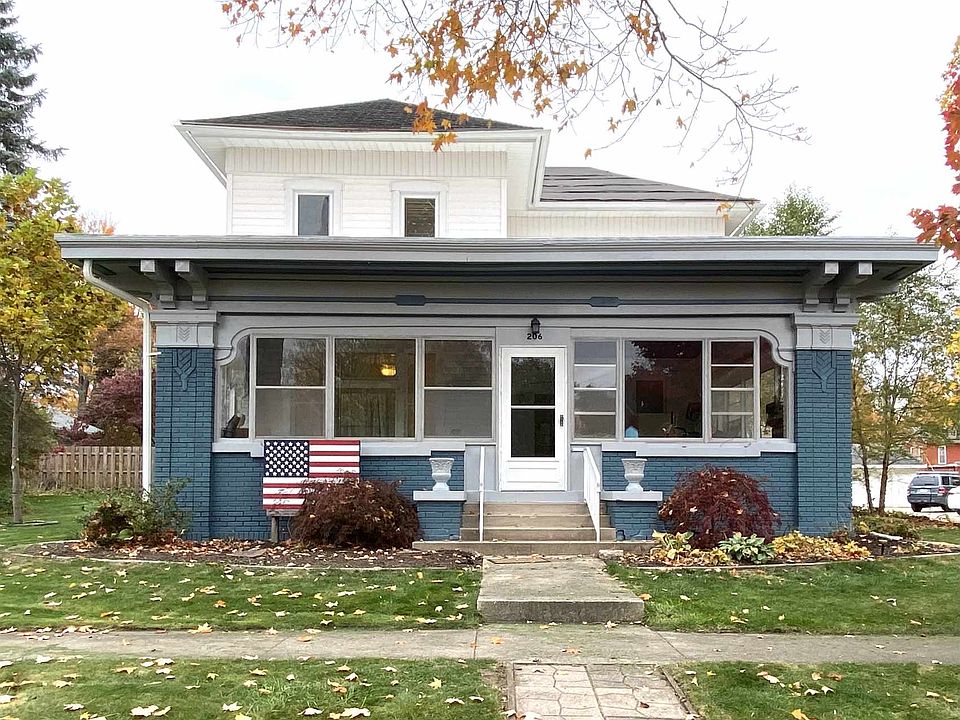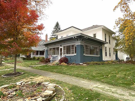 Nestled in the heart of North Manchester's historic blocks is this spectacular two story home. From the moment you enter the brick enclosed porch for all seasons and go through the original glass front door to the scenic view from the kitchen, you will feel at home. The main level consists of a beamed ceiling family room with beautiful fireplace, living room or den, dining room big enough for the entire family, laundry room and 1/2 bath, and eat in kitchen. On the second level find the main bedroom with windowed reading nook and full bath with walk in tiled shower featuring double shower heads, plus a walk in closet, 3 additional bedrooms, and another twin sink bathroom with tub/shower unit. Original features include family room fireplace with gas insert, tall ceilings, house wide crown molding, refinished hardwood flooring, pocket doors, built in hutch, and front picture windows. The upgrades are endless and include, but are not limited to, custom ceilings, all lighting and ceiling fans, granite countertops, ceramic backsplash, new appliances, all new vanities, sinks, fixtures, tub/showers, and ceramic tile. No worries while the kids are playing in the fenced yard or the pets are outside. A private patio, 2 car garage with brand new door, garden shed, and vast perennials make the outdoor space one you will spend all your summer days enjoying. This home allows your family the space to spread out! A brand new roof was completed 11/2020.