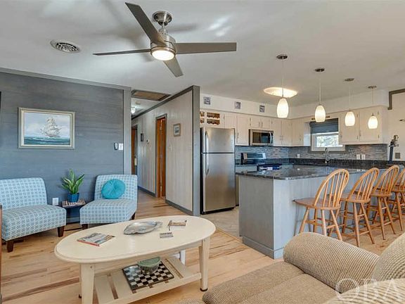 THIS IS ONE SWEET BEACH COTTAGE! Located in the heart of Kill Devil Hills and very close to the 5th Street beach access & the popular walking/bike path along the sound-front on Bay Drive. This three bedroom/2bath home has been upgraded and meticulously maintained! Living, Dining & Kitchen areas with beautiful new hardwood flooring and all new light fixtures. Kitchen with all stainless-steel appliances, smooth-top cooktop, double oven, granite countertops. Enjoy your days & nights on the covered deck off the living area and on the additional roof top deck. The bathrooms have been updated to look like they just came out of a Joanna Gaines magazine. Ground floor has tile flooring. The heated square footage of 1,584 includes a 400â ground floor bonus room that the owners have enjoyed as a theater room and office area. The ground floor was not included in the original plans of the home and may not be permitted. X flood zone, Outdoor Shower, One car garage, Two Storage Rooms off the garage with washer/dryer. Home sits on a 5,863' lot. The home has been used as a second home only and it shows!