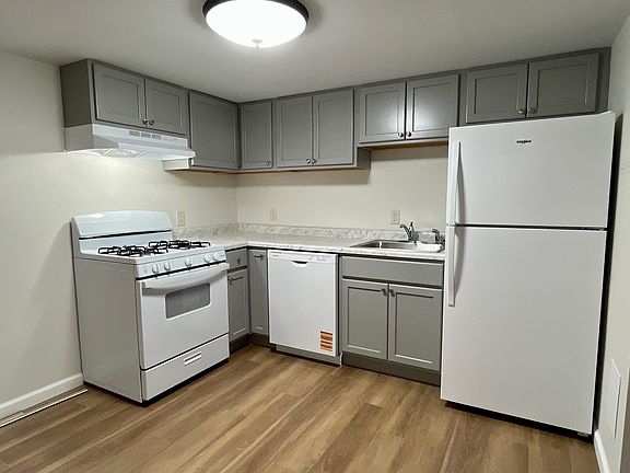 $775 a month, 1 bedroom, 1 bathroom apartment. Featuring central heat & AC, washer & dryer hookups in unit, full bathroom, kitchen with gas stove and a dishwasher, ceiling fan, and hardwood plank flooring. Located in a secure building with a mailroom, central courtyard, 2 coin laundry rooms, and a parking lot with security cameras. Located in the lower level of building. Customer pays for electric & gas services. water/sewer, trash, and maintenance services included. High-speed internet service/Wi-Fi not included but is available for purchase. Up to 2 cats are okay with monthly pet fee, no dogs please! Non-smoking building. 1 year lease minimum.