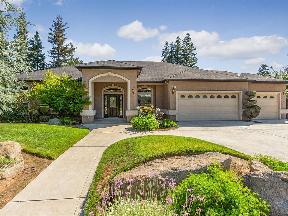 This Elegant and Charming custom home is located in the prestigious Bluffs. Featuring a spacious open floor plan, enter the large entry open to the formal dining room on one side and living room on the other. Walk straight into the great room featuring a fireplace and large windows viewing the impressive beautifully landscaped back yard. Away from the two bedrooms and bonus room(could be a 4th bedroom by simply closing the door way or great as an in-law suite)is the isolated master with his and hers closets and sinks. Need parking? There is a 3 car garage extra large drive way with gated RV parking. Located in Awarding winning Clovis Unified, walking distance to Woodward Park, minutes from River Park, Fresno Heart Hospital, shopping, dinning and entertainment!!! Truly a house to call HOME!