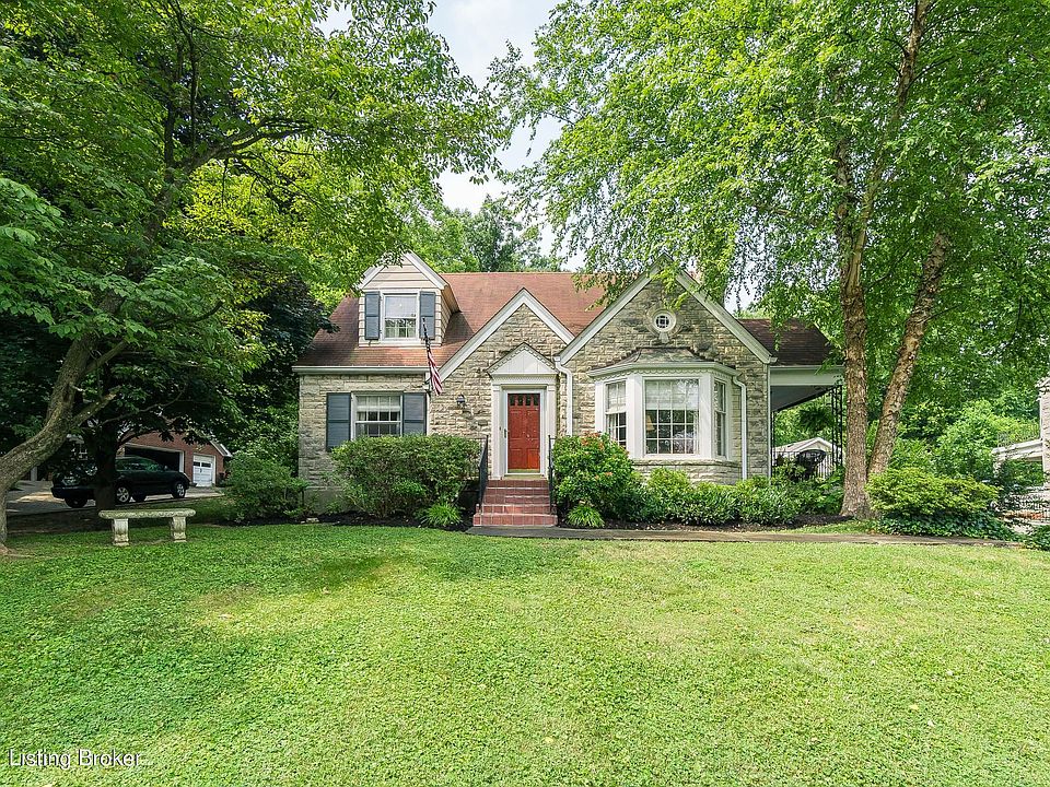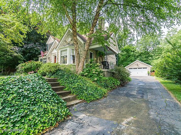 A picturesque cozy cottage in Kenwood - but it's so much more than that!! There is a little over 3,000 square feet of living space in this idyllic Bedford Stone home with beautifully landscaped outdoor areas to enjoy as well. Relax on the front porch, the side porch, the rear screened in patio, the outdoor patio with brick grilling station, enjoy the hot tub with a privacy screen (that remains), or enjoy the park-like setting of the raised backyard! Laze on a hammock, have a picnic, or sit outside the adorable storage building / playhouse! As you enter the front door, you'll love the classic touches including hardwood floors, chunky baseboards, crown molding, arched doorways, and the central staircase with oak trim! The relaxing living room includes a fireplace, access to the sid