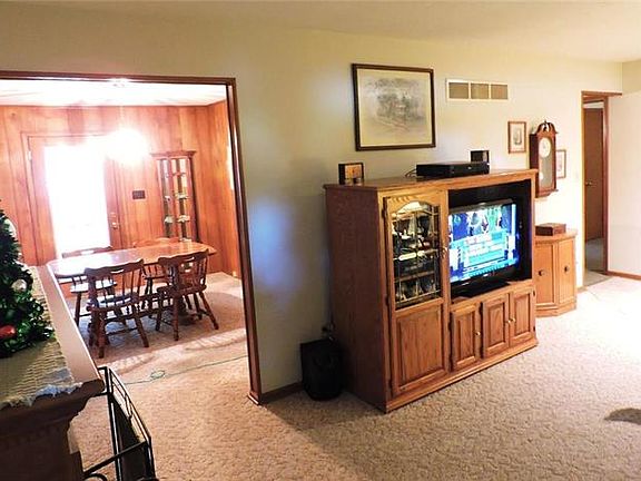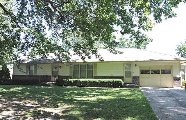 Nice ranch on beautiful double lot, in the heart of Raymore. Home has been very well maintained -- just needs a little updating. 2 big bedrooms, 2 full bathrooms, updated kitchen, formal dining room, covered deck, and enclosed patio, laundry room/breezeway all on one level. PLUS huge 36' x 24' detached garage that can easily house multiple vehicles. PLUS full unfinished basement. Nice shady setting with lots of mature trees.