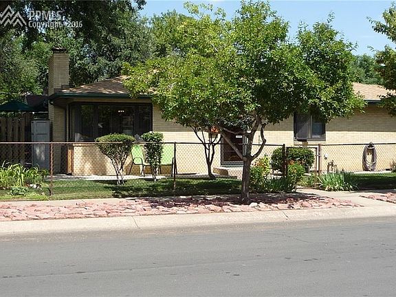 Immaculate Brick Rancher~Corner Lot~Upgraded Pella windows w/inset mini blinds throughout the main level of this inviting home. Walk into the living room with a gorgeous brick, wood burning fireplace w/built-in bookshelves and hardwood floors. Continue into the dining area with Pella patio doors that welcome you outside to an entertainer's covered concrete patio. Enjoy evenings with friends on the large paver sitting area around a massive maple tree with flower gardens and a 6 X 8 storage shed. The kitchen/dining area has 3 overhead fans, a pendant light over the kitchen sink, gas stove, dishwasher and the refrigerator STAYS!!!. Down the hallway is a spotless full bath and 2 bedrooms. One with a cozy, relaxing sitting area with black out shades and 2 closets. Downstairs is a family room with a sitting bench that has built-in storage, an office with built-in shelves, 3 bedrooms and a 3/4 bath. Bedrooms in Basement are non-conforming. The large utility room has a pegboard wall and rubbermaid cabinets for storage. Automatic Sprinkler system for the beautiful flowers and trees that surround this pristine home. 2 year new roof. Property taxes are with a senior exemption. **** Lead Base Paint Disclosure ready **** Great central location with easy access to I/25 for North/South commuters, short distance to the new University Village Shopping Center or UCCS and walk/bike 3 blocks west to tie into the Colorado recreational trail system. Students at Colorado College or access to downtown shopping are only a short 10 minute drive. PRIDE OF OWNERSHIP SHOWS BOTH INSIDE AND OUT!!!!!! Don't miss this one-make an appointment today!!!