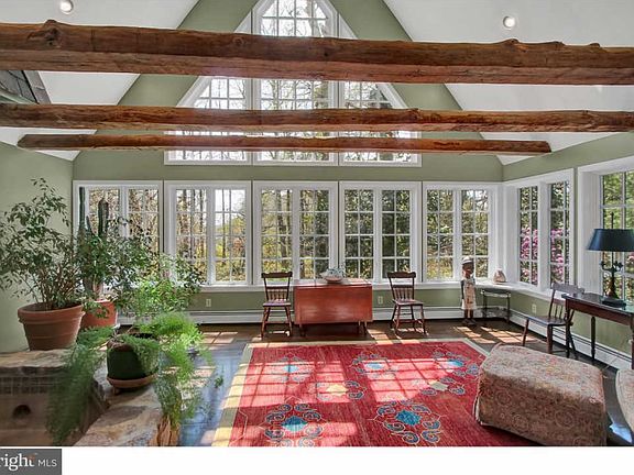 Welcome to this charming colonial, a unique treasure located just outside of town in Franconia Township. It's a one-of-a-kind property with solid bones, great design, and a notable architectural history. It's a property that blends past and present, and that awaits your buyer's unique imprint to serve them well into the future. Built in 1925, the home has only had two owners! It was designed by renowned Doylestown architect Oscar Martin, responsible for many of Montgomery and Bucks County's stately homes and municipal buildings. Commissioned by a prominent Souderton physician, it retains its original charm ? high ceilings, exposed beams, fireplaces, custom millwork -- and also features many modern amenities added by its current owners. You're greeted by an entry foyer with Mercer Museum tile flooring and varied plank wood flooring that carries throughout the home. Through the foyer is a bright eat-in kitchen with a double wall oven, stainless steel appliances, built-in electric range, mosaic tile backsplash and a cozy dining area fireplace. Through the kitchen is a screened in porch, perfect for leisurely mornings or watching the sunset. To the right of the entry way is a light filled living room with another wood burning fireplace and French doors leading to an attached sunken atrium with high ceilings, exposed beams, a built-in stone hot tub and views of the 2nd floor owner's suite balcony above. A library/ den flanks the living room with newly painted built-in cabinets, one more fireplace, more exposed beams and another set of French doors, these leading to an outdoor two-story slate patio and in-ground Pebble pool with raised spa. The home's large family room has an expanded fireplace, built-in bookcases and a set of doors out to the patio. Completing the first floor is a dining room and powder room. The second floor boasts a spacious owner's suite with hardwood floors, a hallway lined with closets, a balcony with sun filled views of the rooms below and an updated private bath with dual sinks and an expanded shower stall. Two other bedrooms and a hall bath encompass the second floor. The third floor loft is a perfect private fourth bedroom. The finished basement has great cabinetry and shelving plus a wine cellar tucked away. The home is situated on almost an acre of landscaped property with mature trees. Walking distance to the town center and the local parks, close to all major highways (including the newly expanded Turnpike) and top rated schools.