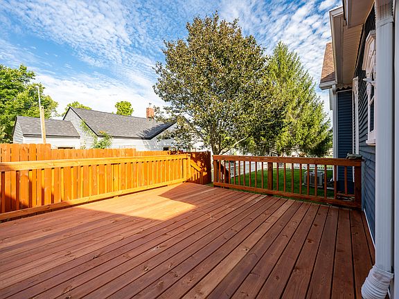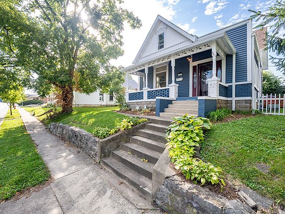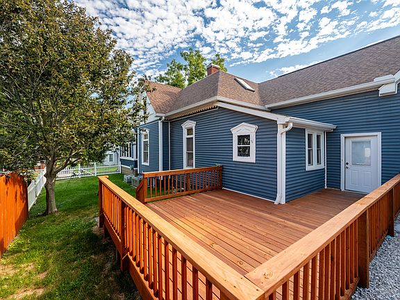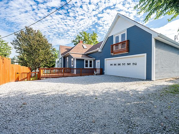 Large 4 bedroom historic home with beautiful woodwork, soaring ceilings, and stained-glass windows just a few blocks from downtown restaurants, shops & DePauw's campus. You'll love the covered front porch with unique fretwork & the new deck in the back overlooking the fenced yard perfect for pets. The attached heated 2-car garage has a large, heated bonus room upstairs. The 1st floor features a formal living room, sunroom, informal parlor with fireplace, formal dining room with built-ins, primary bedroom with ensuite bathroom, kitchen with new flooring & new appliances, laundry room with new flooring, & 2nd full bathroom. The 2nd floor features 3 large bedrooms & bonus room. Basement for utility space. Zoned heating & cooling.