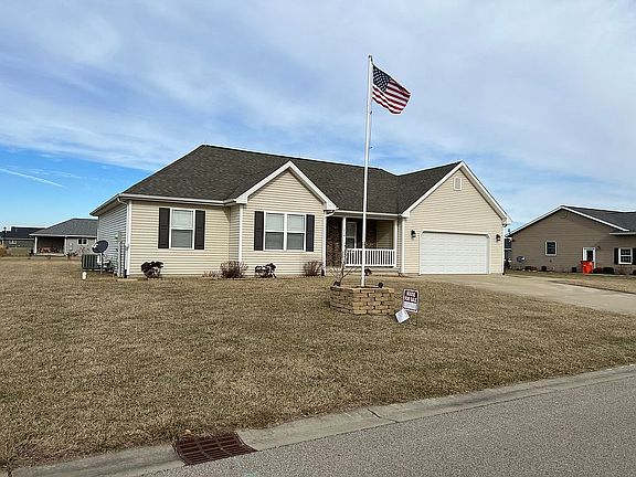 This home offers 4 bedrooms, 3 full bathrooms, open concept with cathedral ceilings, custom cabinets and blinds, and main floor laundry room. Includes stove, refrigerator, dishwasher and microwave. Living room has a large electric fireplace. Carpet in bedrooms and living room. Ceramic tile in kitchen, bathrooms, laundry room and front door entrance. Master bedroom has walk-in closet and full bath attached. Basement has large bedroom, full bathroom, large living room, and storage room. Large 2 car garage finished with storage area and cabinets. The backyard includes a 12x16 wood deck, fire pit, garden area, and 10x16 storage shed with a new roof in 2021. Call Crystal at 217-663-3232