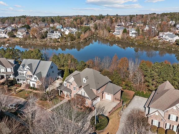 Experience the serenity of waterfront living in this exquisite lakefront home in Cary Park! Step out your back door for a walk on the greenway, or admire the picturesque views from the private balcony off the owner's suite! The exterior boasts timeless architecture, while inside, soaring ceilings create a sense of openness. The layout of this 6BR, 6.5 BA home flows seamlessly, offering an abundance of room for both relaxation & entertainment. And the amenities! Elevator, tankless wtr heater, generator, large walk-up attic, sep dining room, in-law suite on main, chef's kitchen w/gas stove, walk-in pantry, breakfast area & keeping room w/dual fireplace shared w/ 3-season room, add'l fireplace in family room. Mudroom, 3-car garage. walk-out finished basement with bedroom/full bath, flex room, game room w/pool table, air hockey, wet bar, theater, 2 unfinished storage areas; Owners suite & 3 secondary bedrooms on 2nd floor all with private bath, laundry room, owners bathroom has separate vanities, WIC, garden tub & sep walk-in shower. This home has it all!