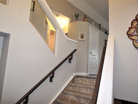 Pride of ownership shows throughout this very well kept 1338 square foot bi-level. Large open foyer leads to main floor with rich dark wood kitchen cabinets. Corner pantry and functional family island. Kitchen adjoins large living room with feature wall gas fireplace with wood mantle and tile surround. Generous use of hardwood and ceramic tile flooring. Vaulted ceilings. The main floor and basement have large windows that let an abundance of natural light. Two additional bedroom on main level. Glass inserted staircase leads to large upper master bedroom with full sized walk in closet and an additional four piece private bath. Basement is fully finished with and an additional large bedroom. Craft room space and or den. The lower family room is very large and open with its own gas fireplace. Immaculate yard with good sized deck and exposed aggregate patio. Storage shed under deck. Fire pit. Rear fence has large double gate perfect for stocking up your RV. Double attached garage. No houses behind you.