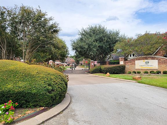 Nestled in a serene courtyard within the highly sought-after gated enclave of Green Trails, this charming 3-bedroom townhome offers comfort & convenience style. Step into a sun-drenched two-story family room where natural light pours in through expansive windows, and architectural arches frame views from the upstairs gameroom. The open-concept layout features tile flooring throughout the main living areas, seamlessly connecting the kitchen, dining, and family spaces perfect for entertaining or relaxing at home. The spacious downstairs primary suite overlooks a private patio and green space, and boasts a luxurious en-suite bath with double vanities, a soaking tub, and a separate walk-in shower. Upstairs, the gameroom provides a flexible retreat, leading to two generously sized bedrooms and a full bath. Enjoy the peace of a gated community with easy access to I-10 West, just minutes from Texas Children's and Methodist hospitals, top-rated schools, and the Energy Corridor.
