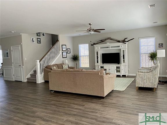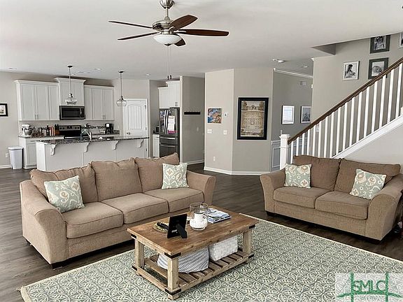 Beautiful home just minutes from I-95 and downtown Savannah. Kitchen features granite countertops on large rectangular island, tile backsplash, 42" cabinets, walk-in pantry and upgraded stainless steel appliances. Vinyl plank flooring in downstairs living areas. An open-concept design offers lots of space on the main level and is perfect for entertaining. Large master bedroom upstairs with two walk-in closets, tiled separate tub and shower, marble countertops and ceramic tile floors. Large secondary bedrooms and a loft/bonus area for extra living space. Fenced in backyard backs up to a wooded area that will never be developed, offering lots of privacy! Spray foam insulation makes this home energy efficient and saves you money on your utility bills. HOA amenities include large resort style pool, tennis courts, clubhouse, and fitness facility.