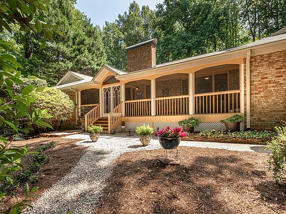 Welcome to your very own private oasis, a hidden gem nestled on over 1 acre of serene, meticulously landscaped, all in the heart of Cary! This highly desired RANCH layout is just minutes away from Waverly Place, Regency, Koka Booth Amphitheatre, Hemlock Bluffs Nature Preserve, and a network of manicured trails. Step inside this well cared-for home, w/ potential of 4 bedrooms, and you'll immediately appreciate the perfect blend of charm and practicality. The remodeled kitchen is a culinary enthusiast's dream, featuring gleaming Dolomite countertops, stainless steel appliances, spacious center island with seating, and a unique dry bar adorned with a captivating curved brick feature wall. Stay warm in the family room next to the brick fireplace. Relax with a good book in the peaceful sunroom that boasts high ceilings with wooden beams. The owners bedroom features a spa bath and private screened porch. Outside, hardscape walkways guide you to a stone patio, cozy fire pit, deck, and a screened front porch, ideal for sipping your morning coffee. Don't miss this rare opportunity: a CARY address, no city taxes and no HOA!