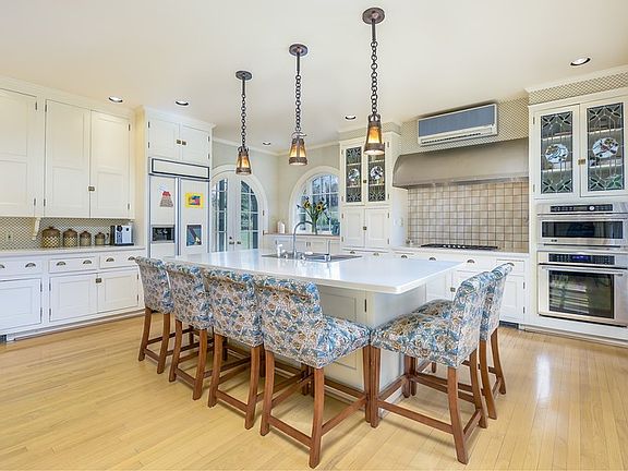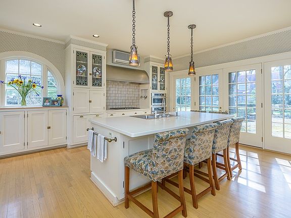 A non working elevator can access all floors. Three car detached garage has a room above which could have multiple uses. The mature trees and plantings add to the enjoyment of this property year round; especially when the stone patio is in use.